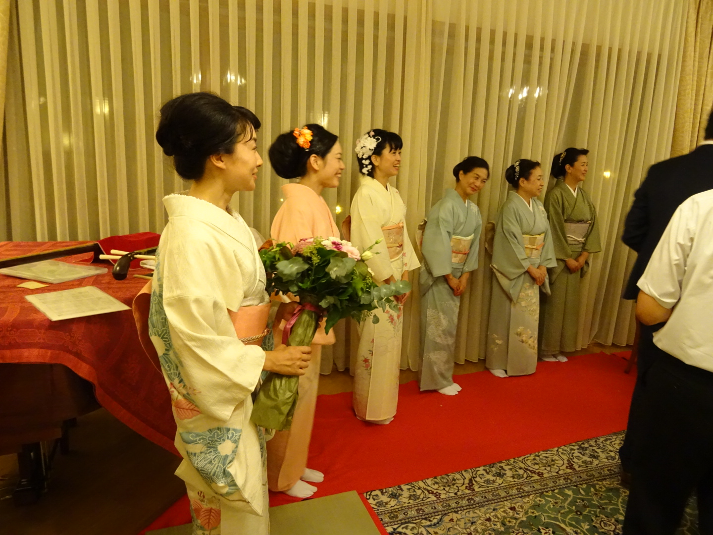 終了後には、小野先生とさみ八先生は花束を、その他の出演者は大きな薔薇の花を頂戴しました。