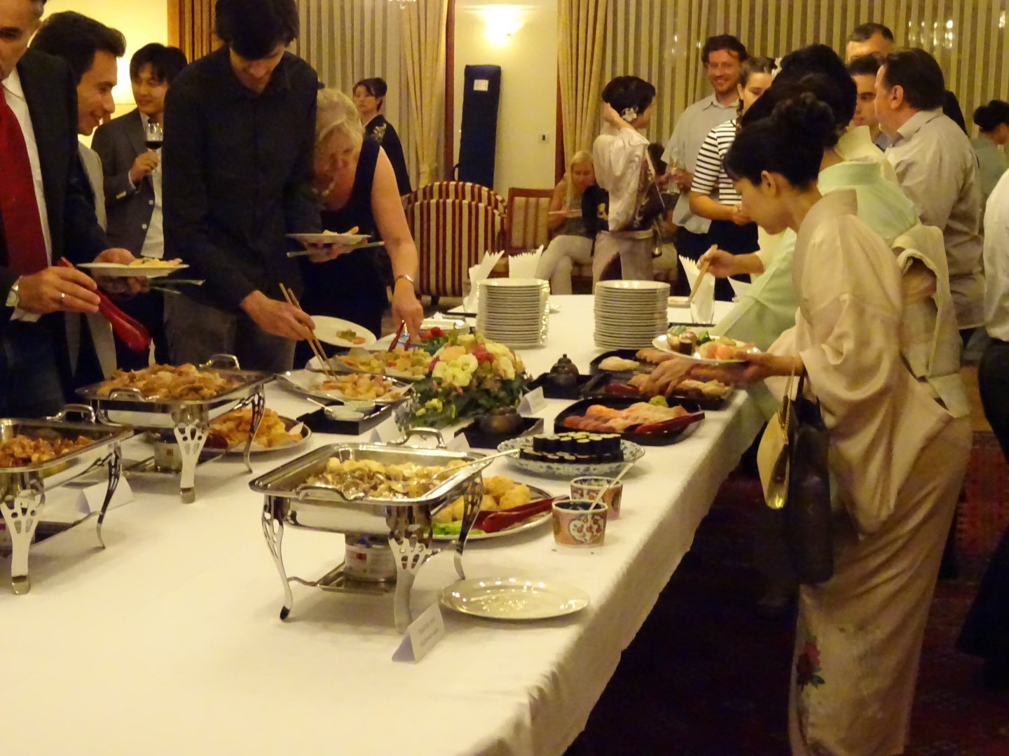 歓迎レセプションでは、お寿司や天ぷらなど日本食をいただきました。